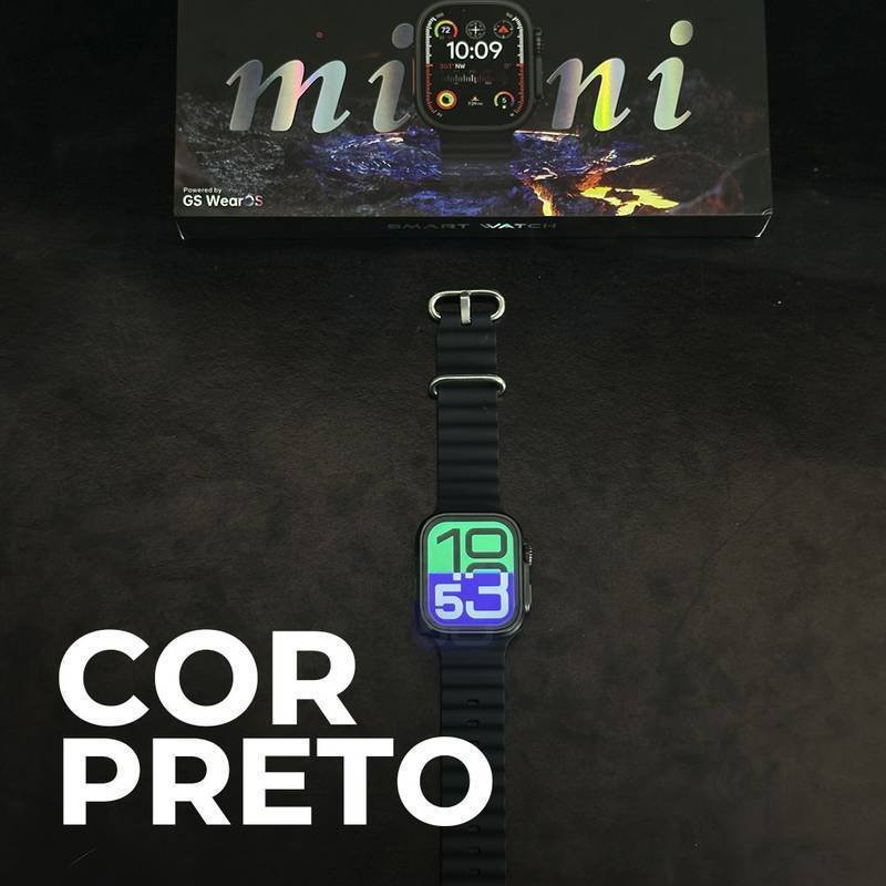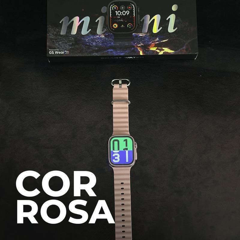 O novo GS10 Ultra Mini traz o design ultra com a delicadeza do minimalismo em uma caixa de 41mm, ideal para pulsos mais finos. Com detalhes premium como trava e parafusos reais, alto-falantes pontilhados e watch faces atualizadas série 10, este modelo destaca-se pela eficiência e sofisticação, com uma CPU 50% mais rápida e funções avançadas para quem não abre mão do estilo e tecnologia.