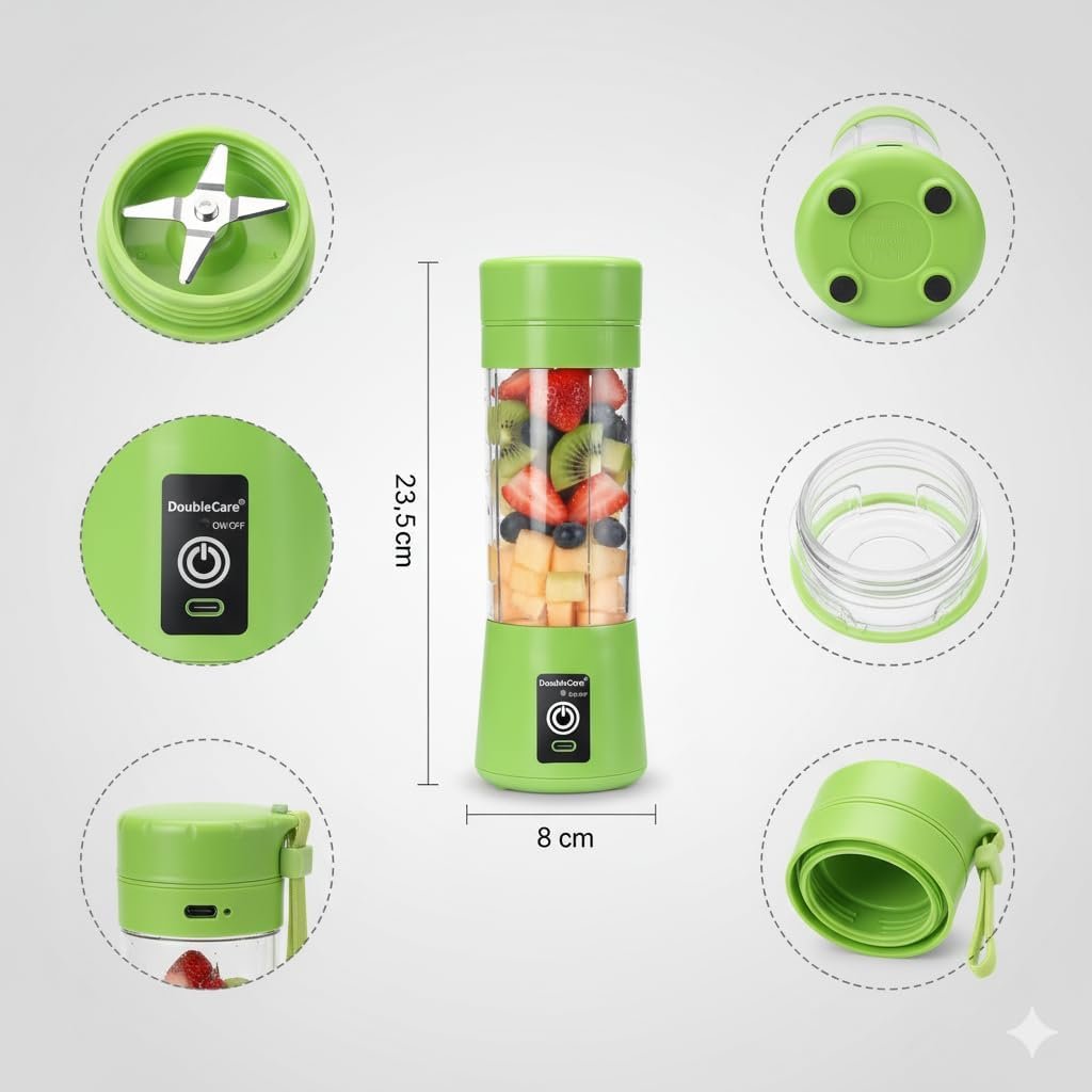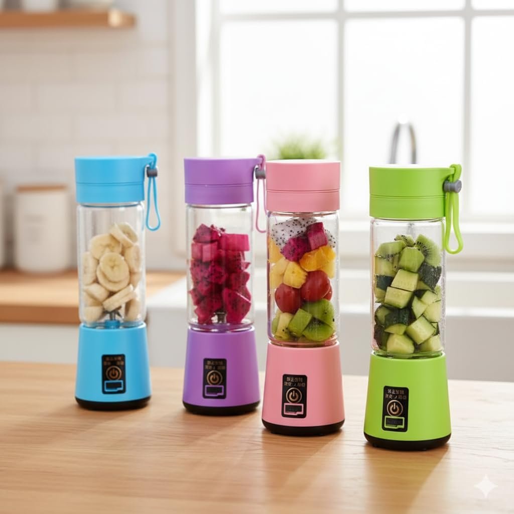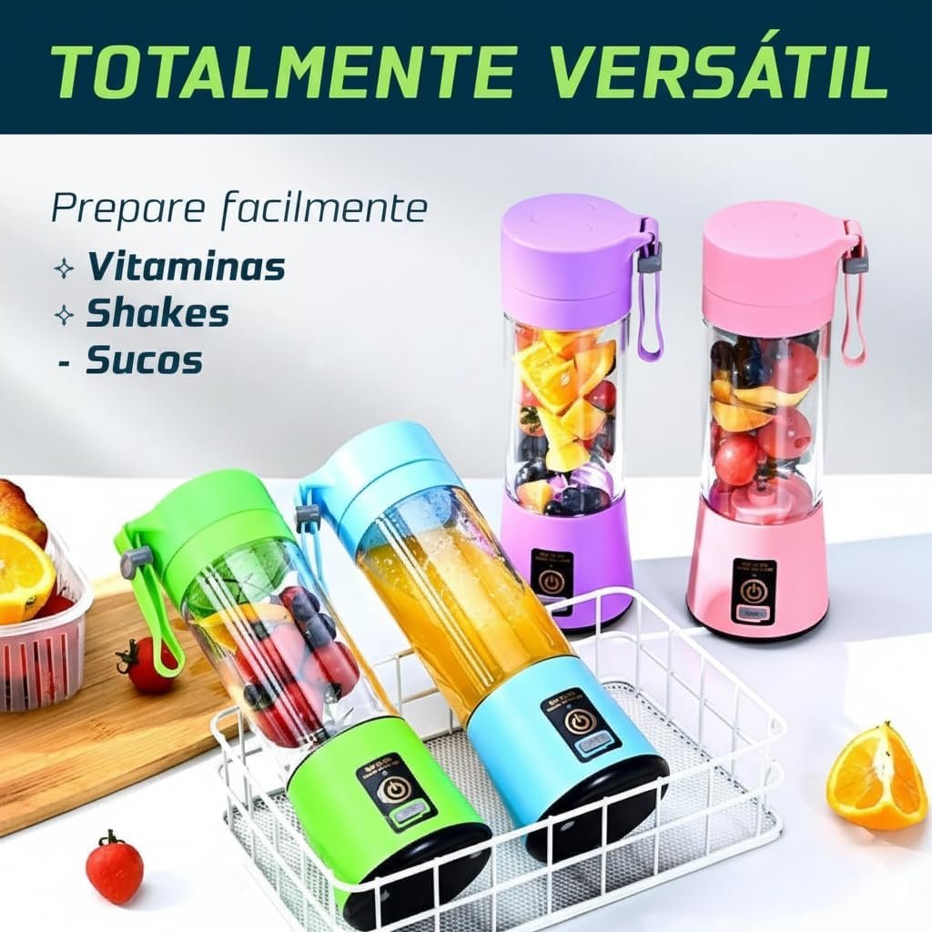 O Mini Liquidificador Portátil USB 380ml possui 6 lâminas em aço inox, é recarregável, sem fio e fácil de limpar. Ideal para preparar sucos, shakes, vitaminas e papinhas em qualquer lugar, com até 15 preparos por carga. Compacto, leve e perfeito para o dia a dia.