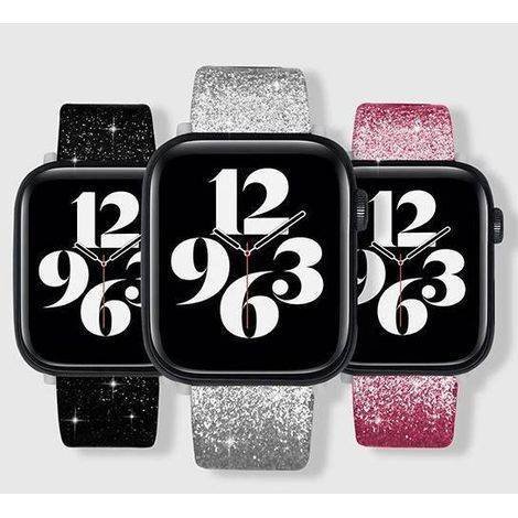 Pulseira em couro com glitter compatível com smartwatches nos tamanhos 38mm, 40mm e 41mm.